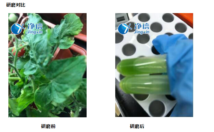 1,準備好待研磨的番茄葉片樣品XX個, XXml半導體適配器,液氮XX,清洗并滅菌;
