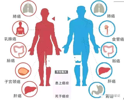 在我國(guó),癌細(xì)胞最頻繁“光顧”的人體組織,位居男性發(fā)病率前十位的分別是,肺、胃、肝、食管、大腸癌、膀胱、胰腺、腦、淋巴、腎;女性為肺、乳腺、大腸、胃、肝、食管、卵巢、宮頸、胰腺、腦。“可以說,這十種腫瘤占據(jù)了所有腫瘤類型的80%以上。